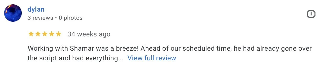 Convenient and quickest way to self-tape your audition. Simply sign up online, schedule your time, and I’ll send you a Zoom link.
